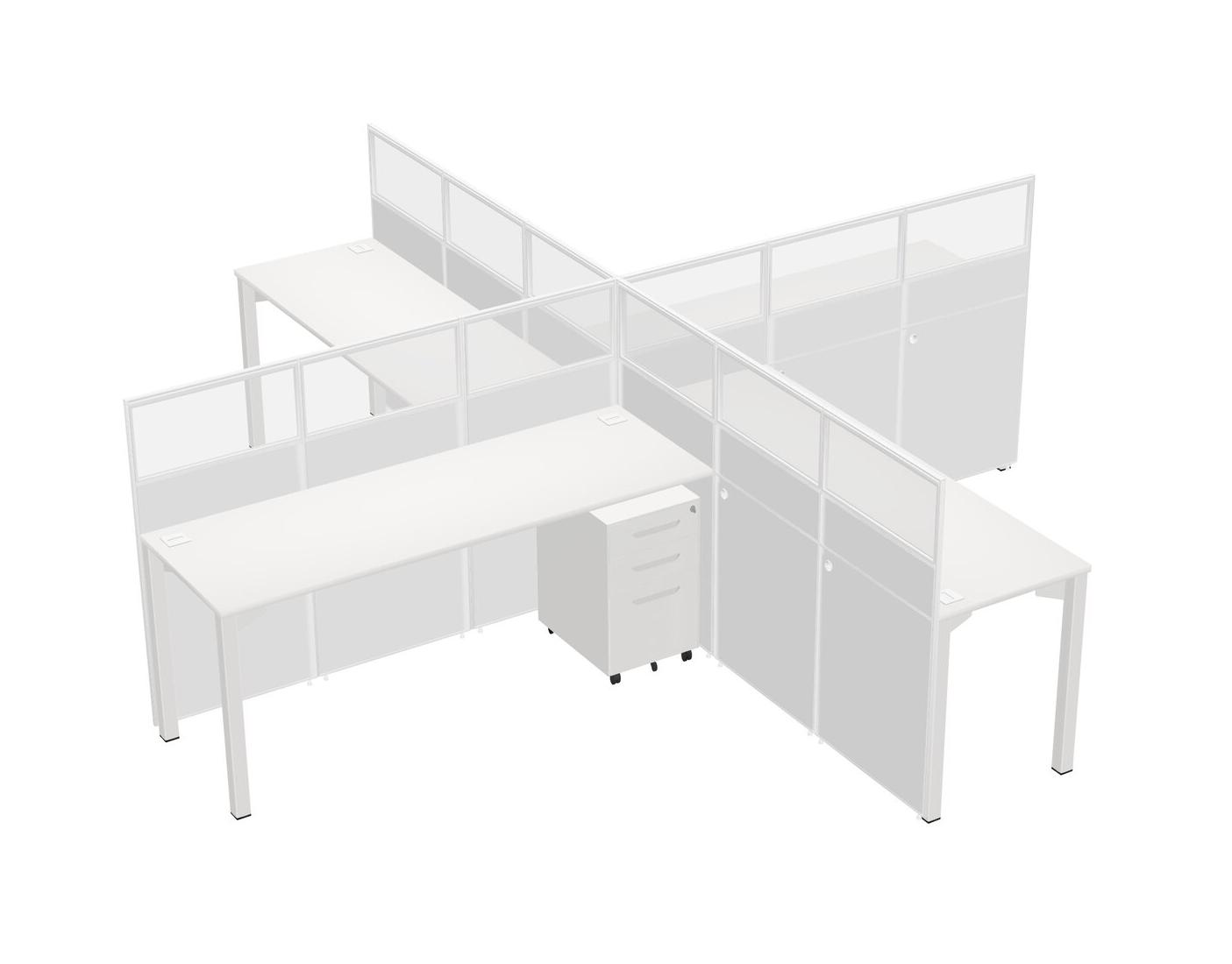 Postes De Travail Quadruples Blancs Pour 4 Personnes + Tiroirs Mobiles En Métal Blanc