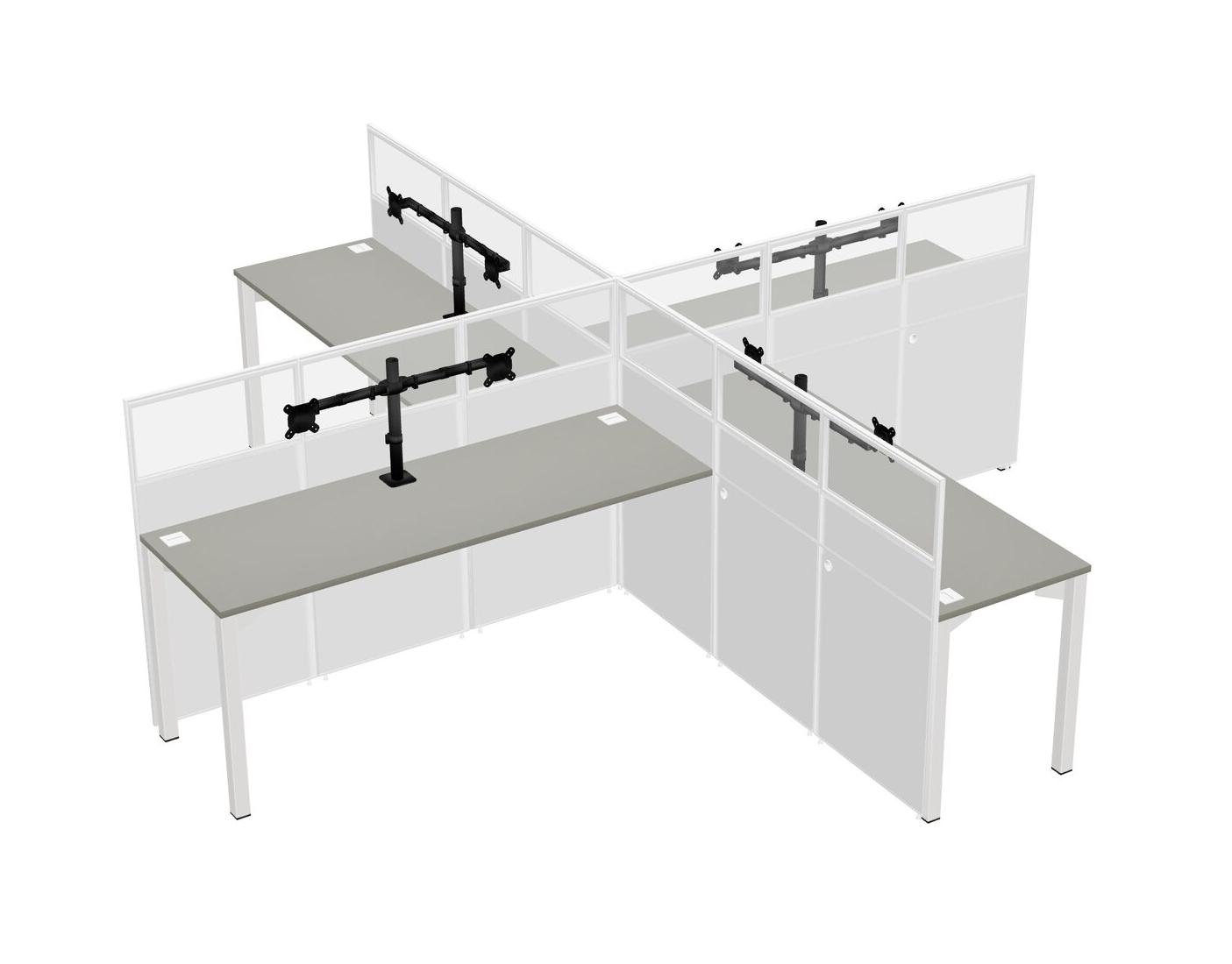 Postes De Travail Quadruples Grey Shadows Pour 4 Personnes + Bras Pour écran (bras Doubles)
