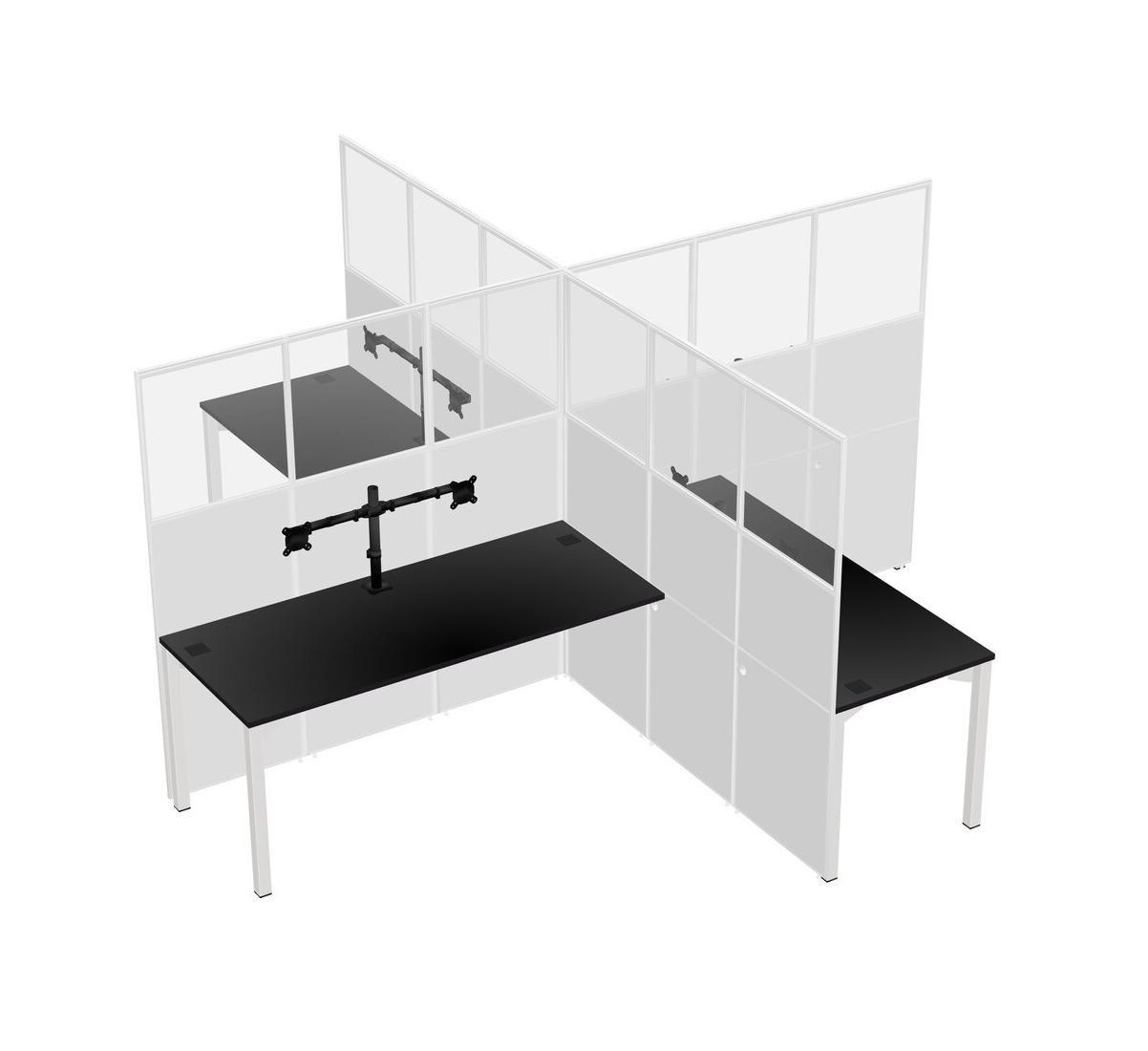 Postes De Travail Quadruples Noirs Pour 4 Personnes + Bras Pour écran (bras Doubles)