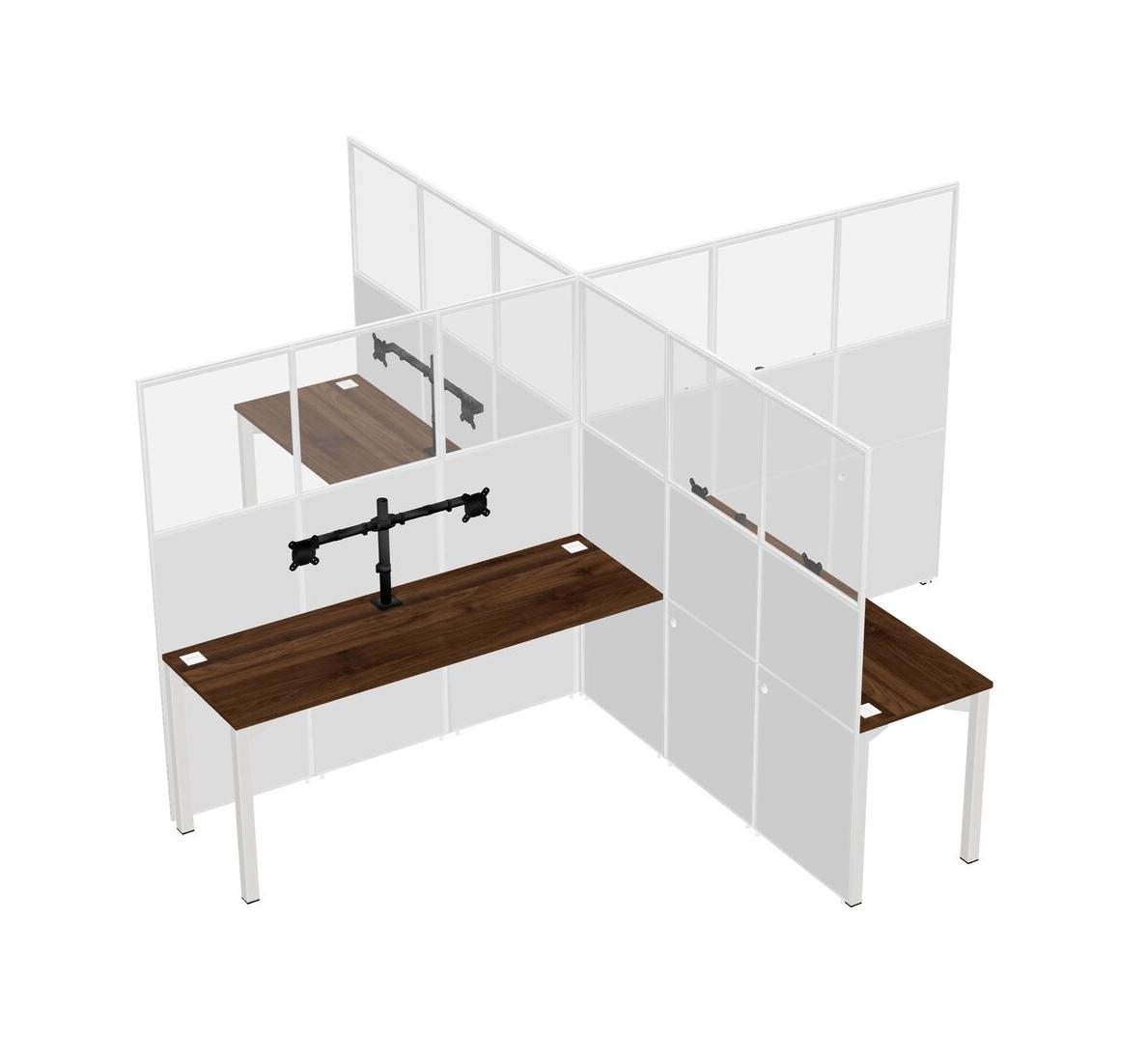 Postes De Travail à Quatre Cabines En Noyer Columbia Pour 4 Personnes + Bras Pour écran (bras Doubles)