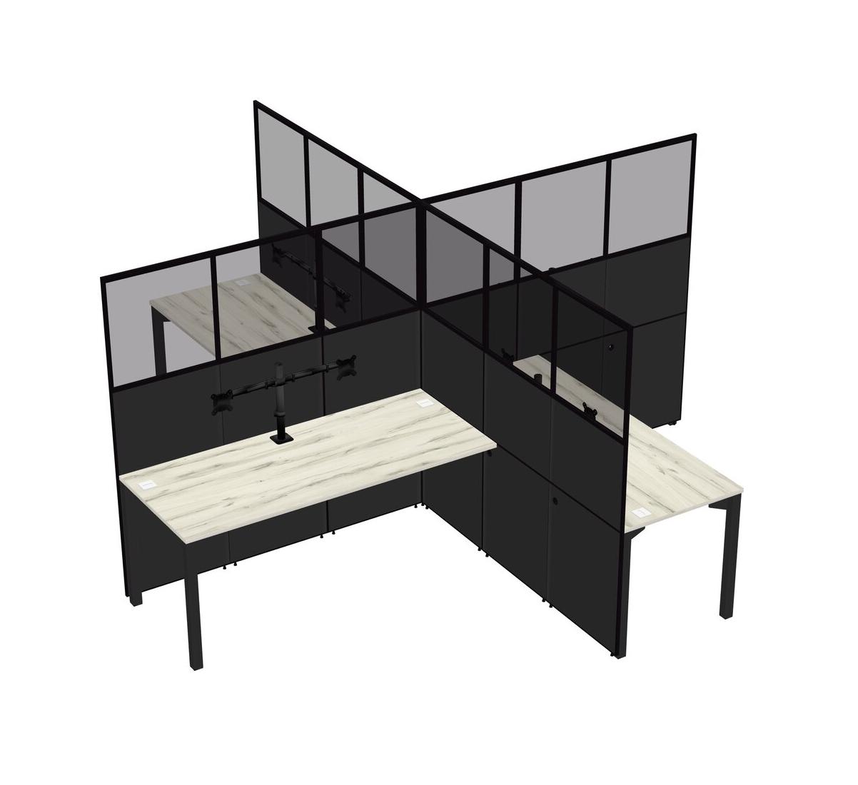 Postes De Travail Quadruples Heinne Holz Pour 4 Personnes + Bras Pour écran (bras Doubles)