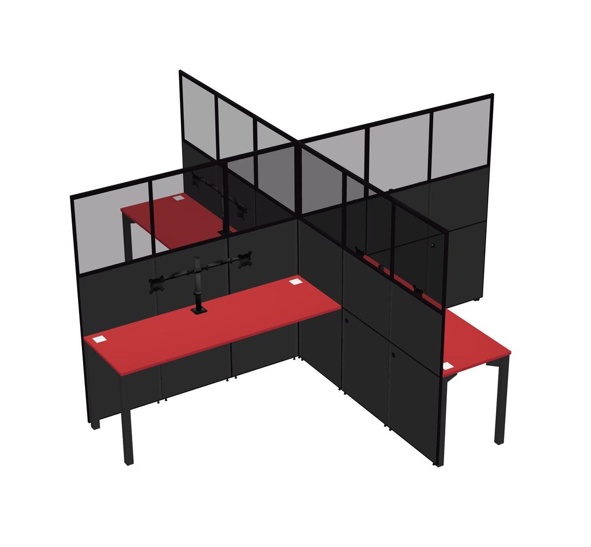 Postes De Travail Quadruples Prism Red Pour 4 Personnes + Bras Pour écran (bras Doubles)