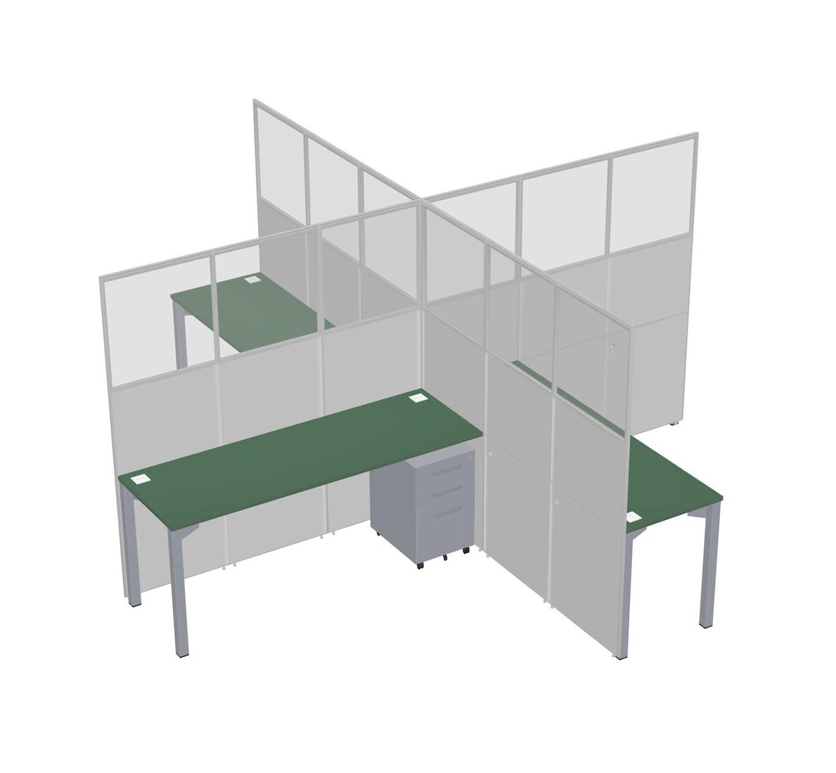 Postes De Travail Quadruples Verts Pour 4 Personnes + Tiroirs Mobiles En Métal Gris