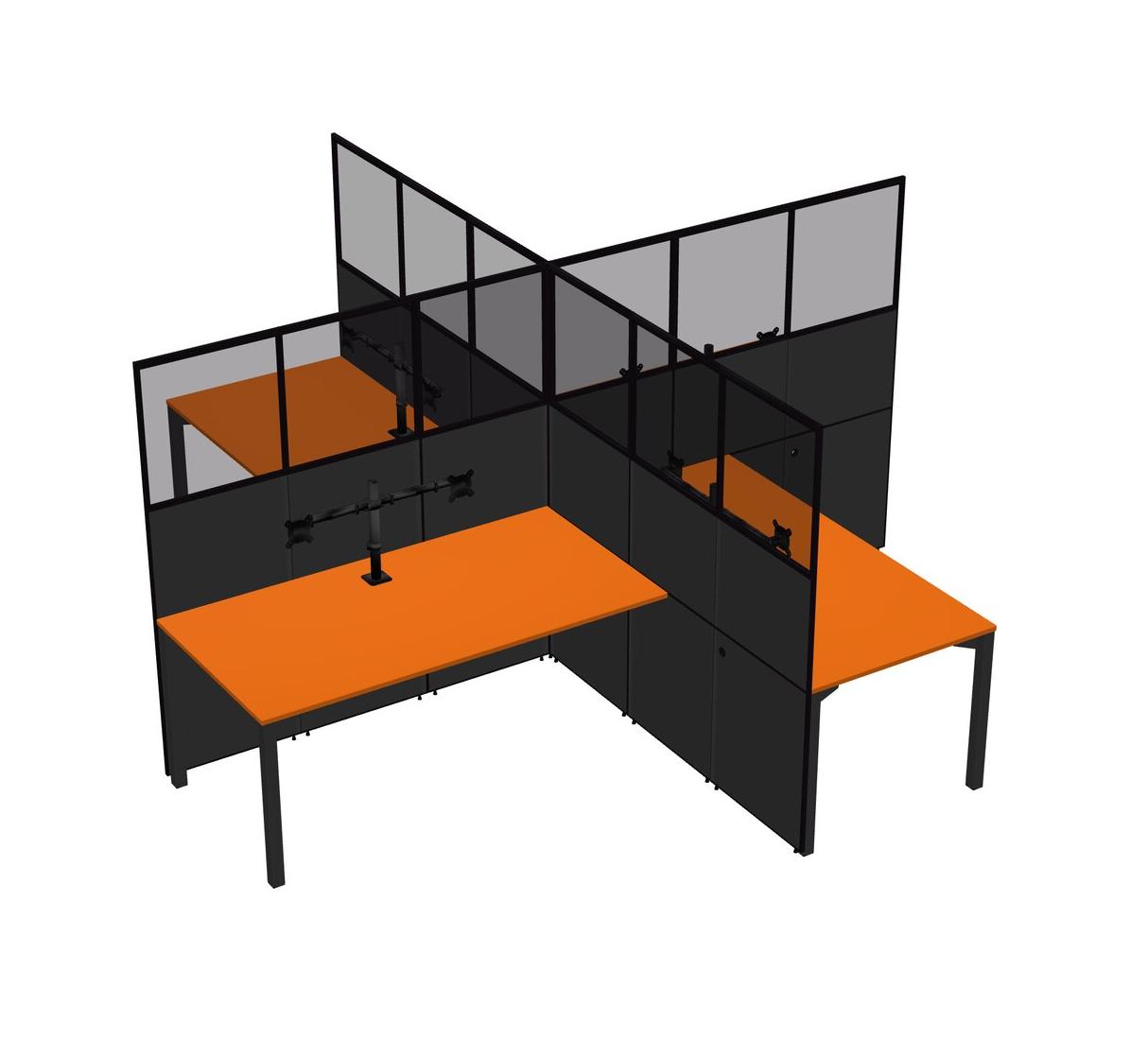 Postes De Travail Quadruples Orange Pour 4 Personnes + Bras Pour écran (bras Doubles)