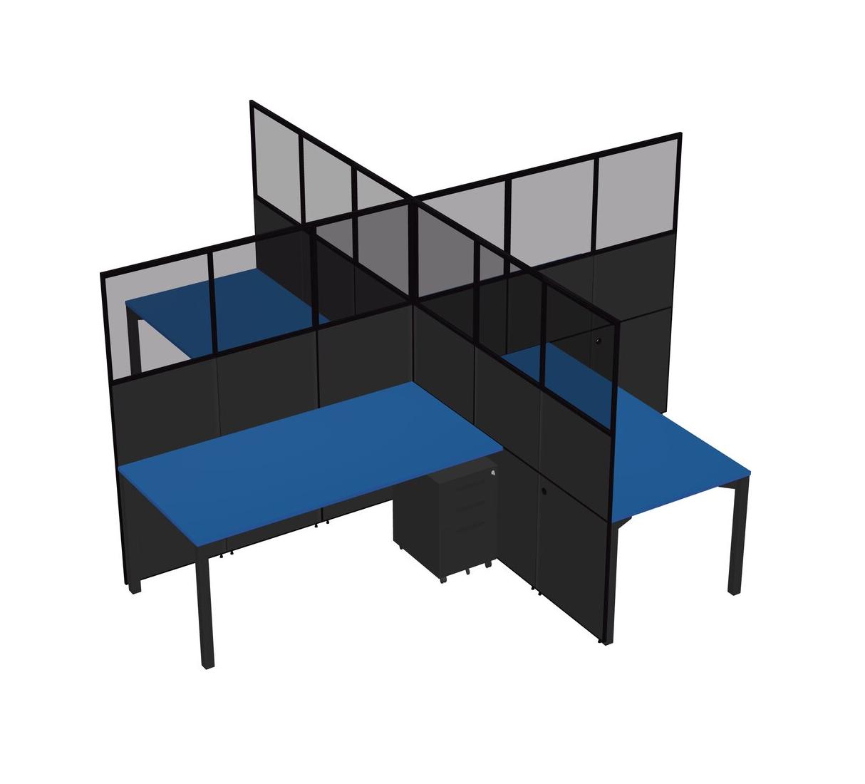 Postes De Travail Quadruples Prism Blue Pour 4 Personnes + Tiroirs Mobiles En Métal Noir