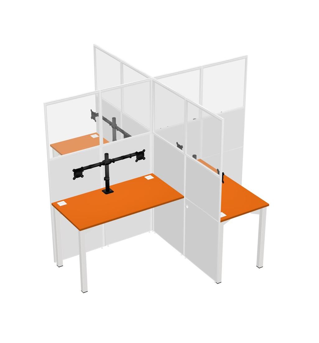 Postes De Travail Quadruples Orange Pour 4 Personnes + Bras Pour écran (bras Doubles)