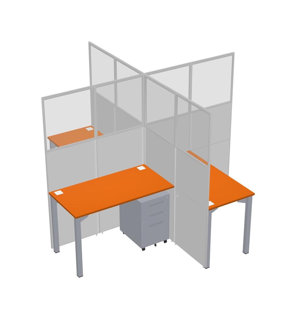 Postes De Travail Quadruples Orange Pour 4 Personnes + Tiroirs Mobiles En Métal Gris