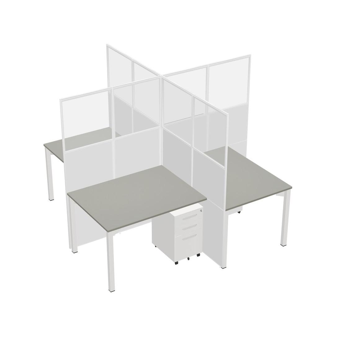 Postes De Travail Quadruples Grey Shadows Pour 4 Personnes + Tiroirs Mobiles En Métal Blanc