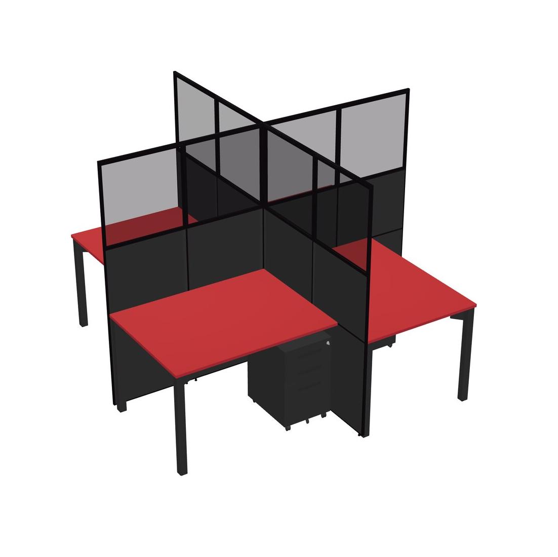 Postes De Travail Quadruples Prism Red Pour 4 Personnes + Tiroirs Mobiles En Métal Noir