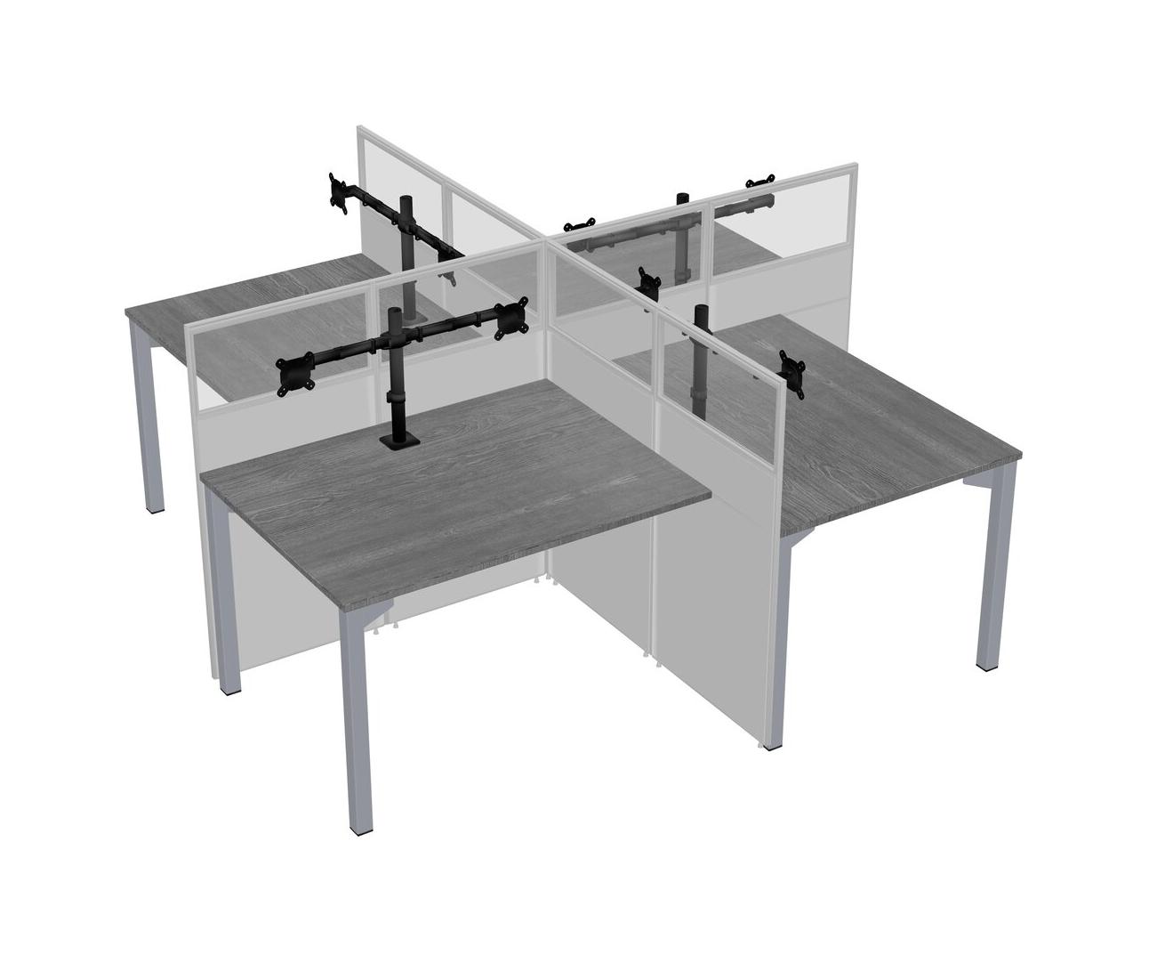 Postes De Travail Quadruples Gris Pour 4 Personnes + Bras Pour écran (bras Doubles)