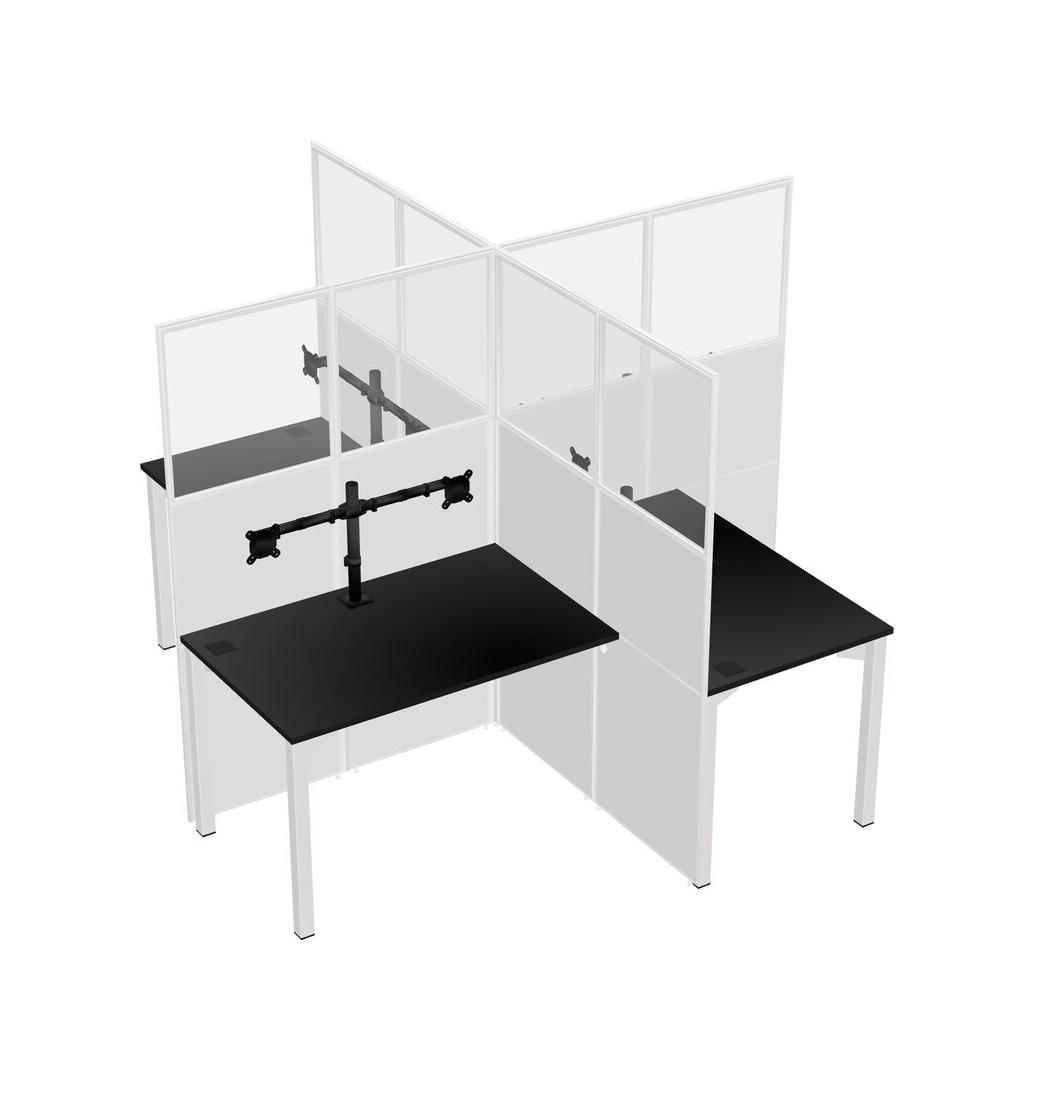 Postes De Travail Quadruples Noirs Pour 4 Personnes + Bras Pour écran (bras Doubles)