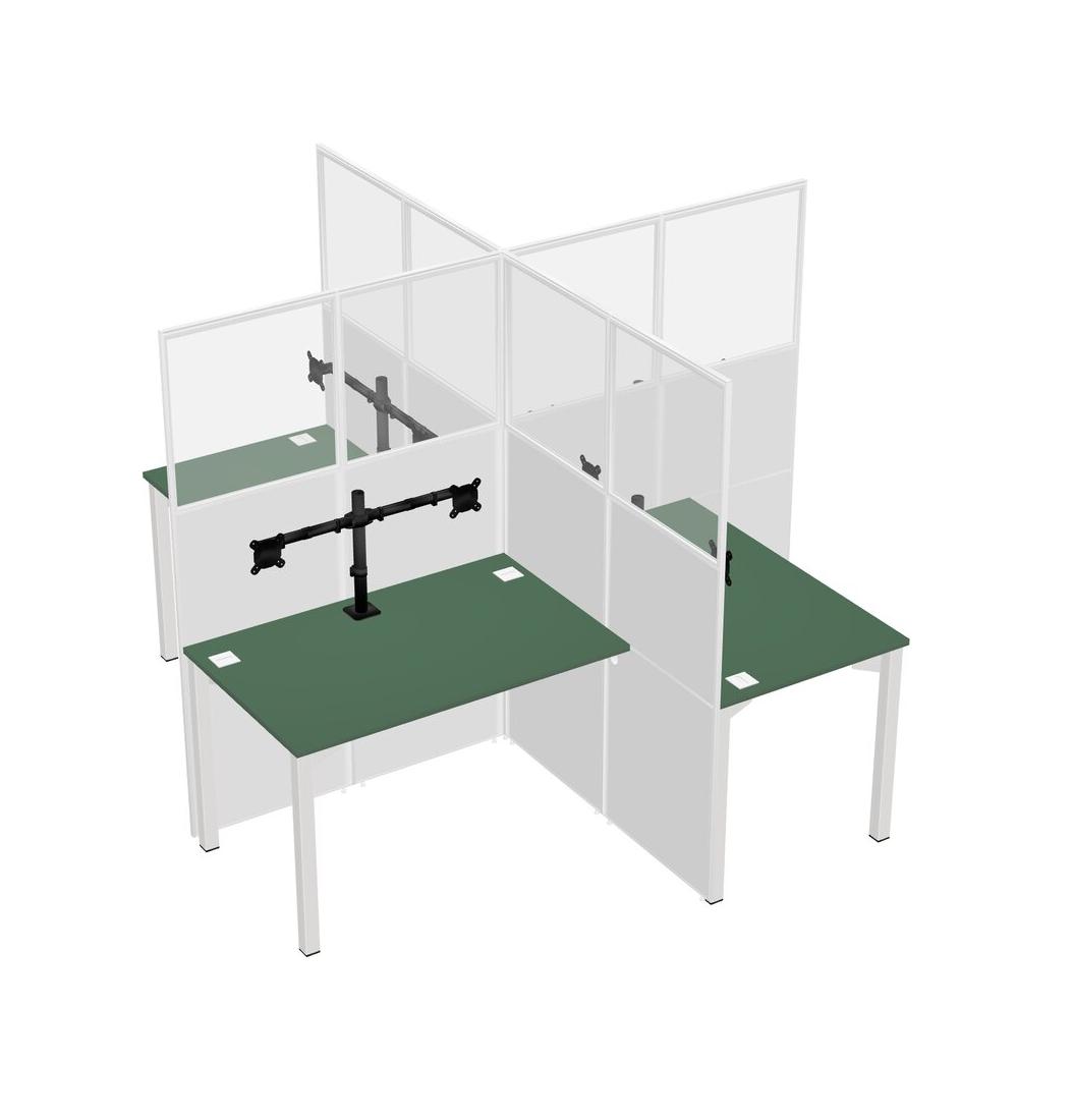 Postes De Travail Quadruples Verts Pour 4 Personnes + Bras Pour écran (bras Doubles)