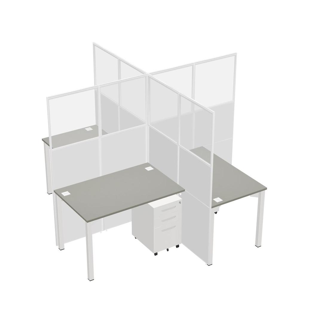 Postes De Travail Quadruples Grey Shadows Pour 4 Personnes + Tiroirs Mobiles En Métal Blanc