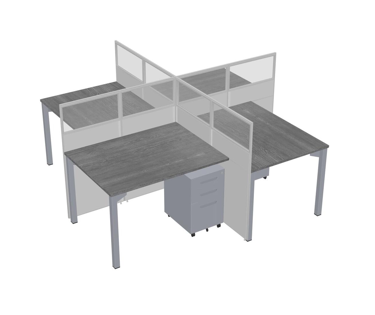 Postes De Travail Quadruples Gris Pour 4 Personnes + Tiroirs Mobiles En Métal Gris