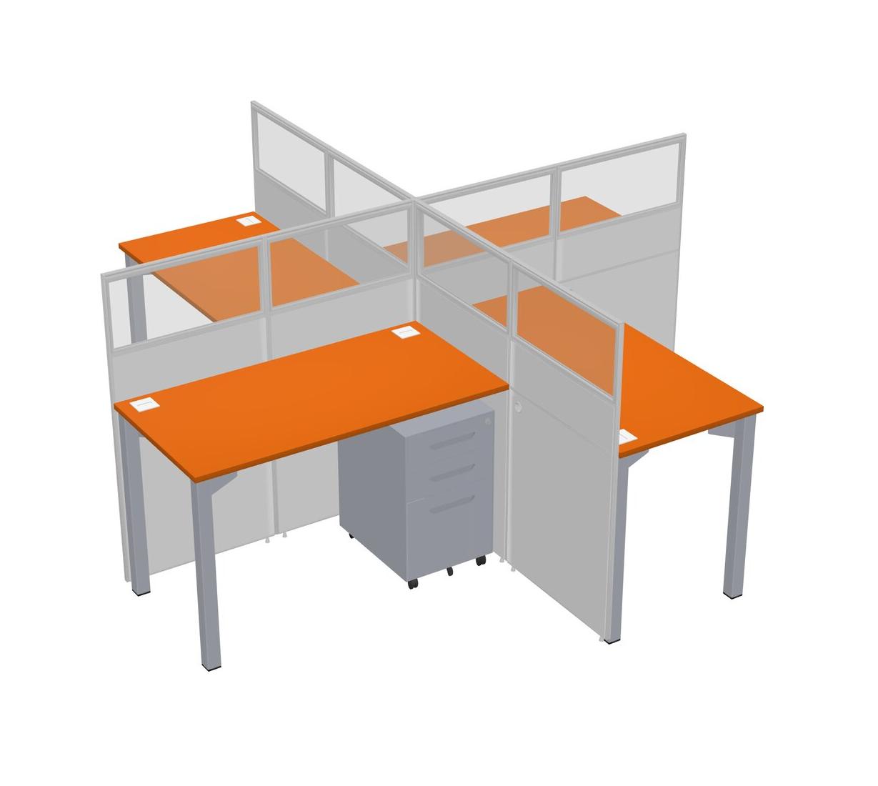 Postes De Travail Quadruples Orange Pour 4 Personnes + Tiroirs Mobiles En Métal Gris