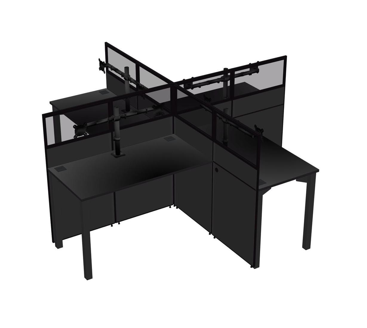 Postes De Travail Quadruples Noirs Pour 4 Personnes + Bras Pour écran (bras Doubles)