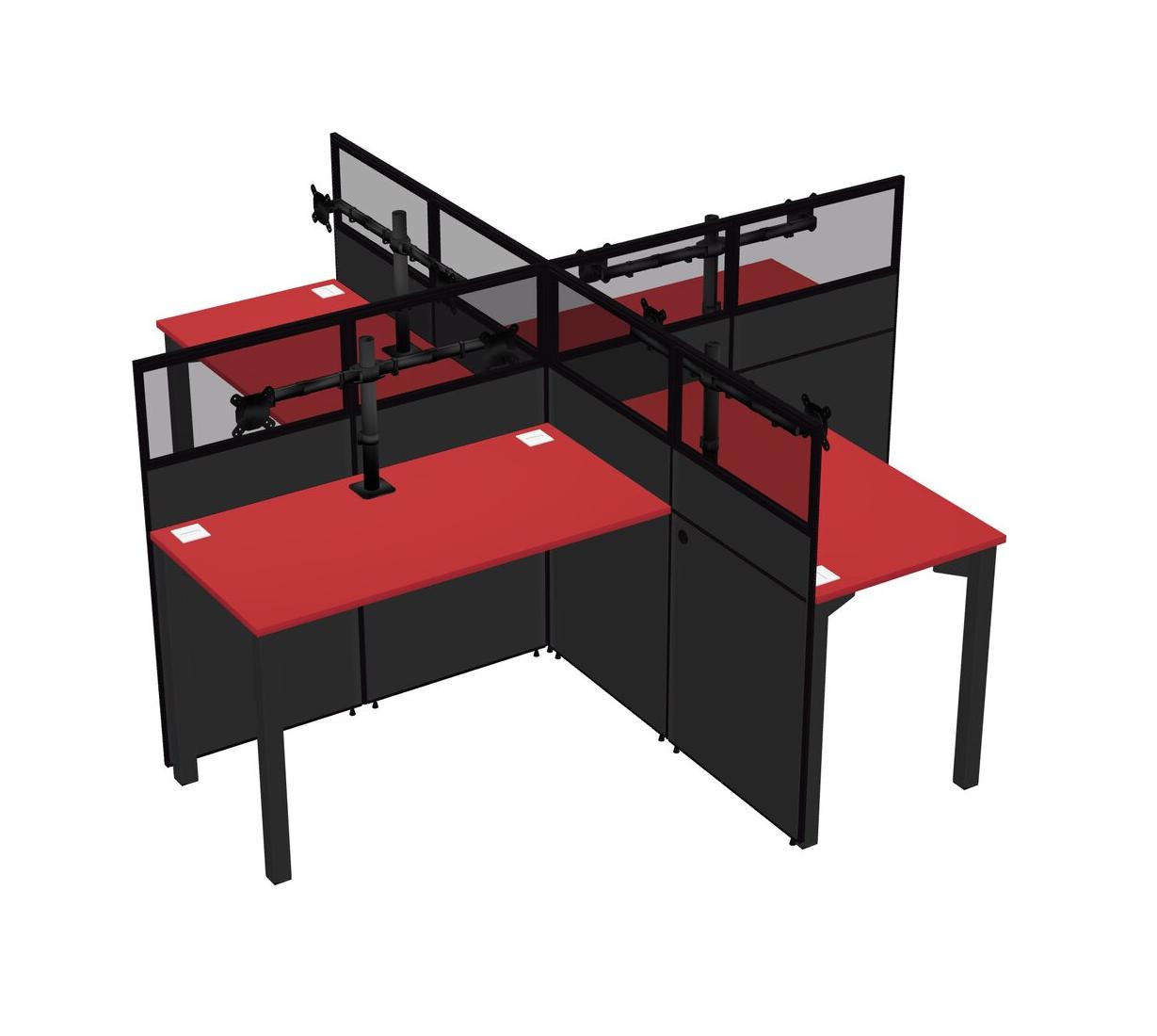 Postes De Travail Quadruples Prism Red Pour 4 Personnes + Bras Pour écran (bras Doubles)