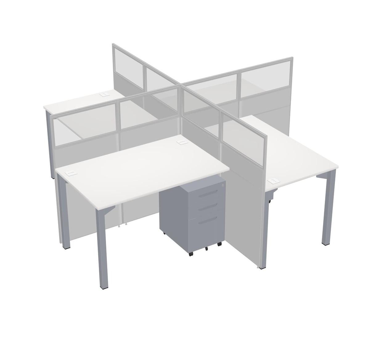 Postes De Travail Quadruples Blancs Pour 4 Personnes + Tiroirs Mobiles En Métal Gris