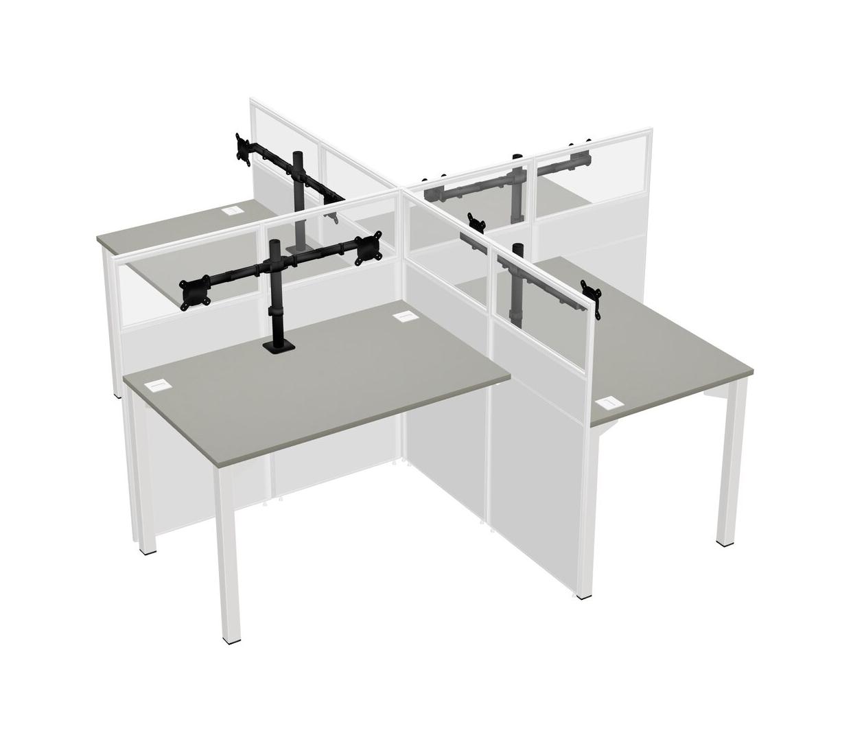 Postes De Travail Quadruples Grey Shadows Pour 4 Personnes + Bras Pour écran (bras Doubles)