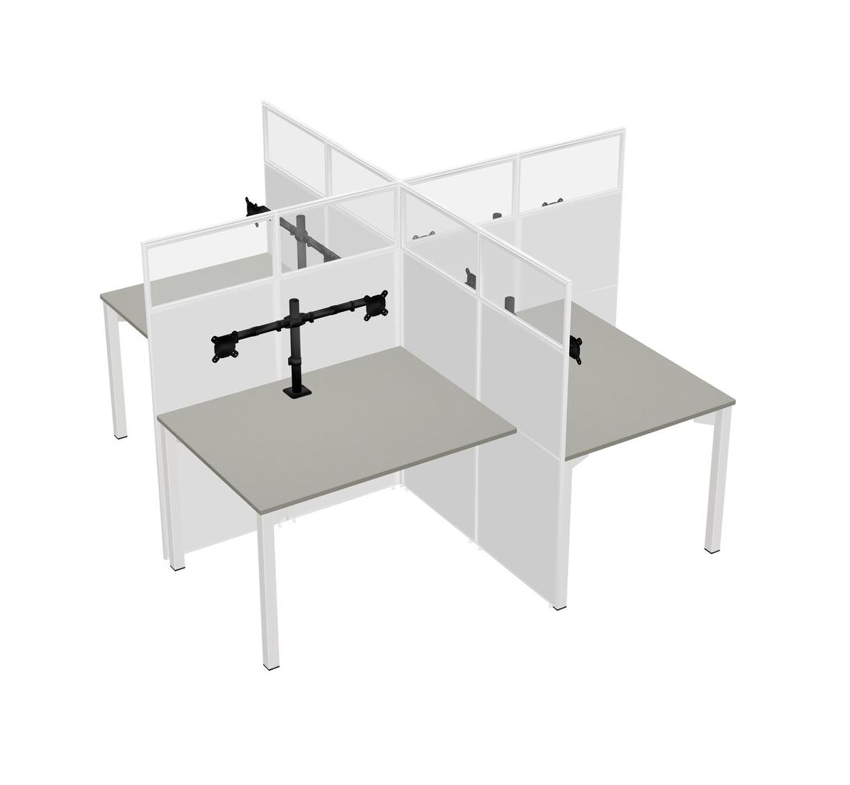 Postes De Travail Quadruples Grey Shadows Pour 4 Personnes + Bras Pour écran (bras Doubles)