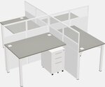 Postes De Travail Quadruples Grey Shadows Pour 4 Personnes + Tiroirs Mobiles En Métal Blanc
