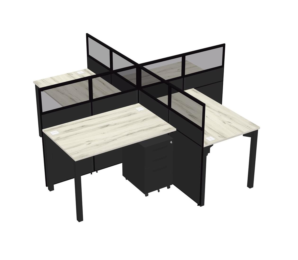 Postes De Travail Quadruples Heinne Holz Pour 4 Personnes + Tiroirs Mobiles En Métal Noir
