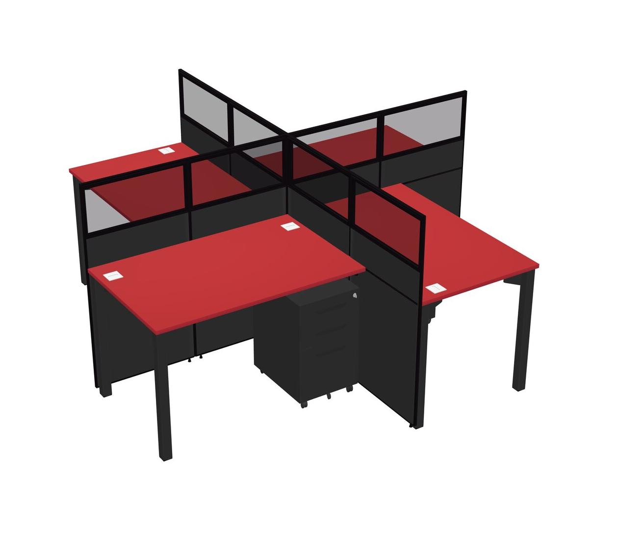 Postes De Travail Quadruples Prism Red Pour 4 Personnes + Tiroirs Mobiles En Métal Noir