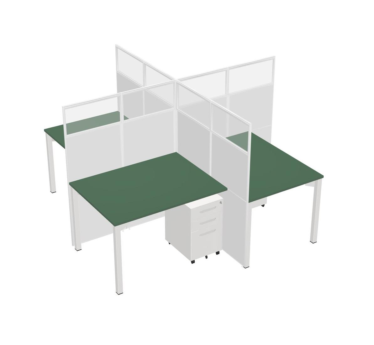 Postes De Travail Quadruples Verts Pour 4 Personnes + Tiroirs Mobiles En Métal Blanc