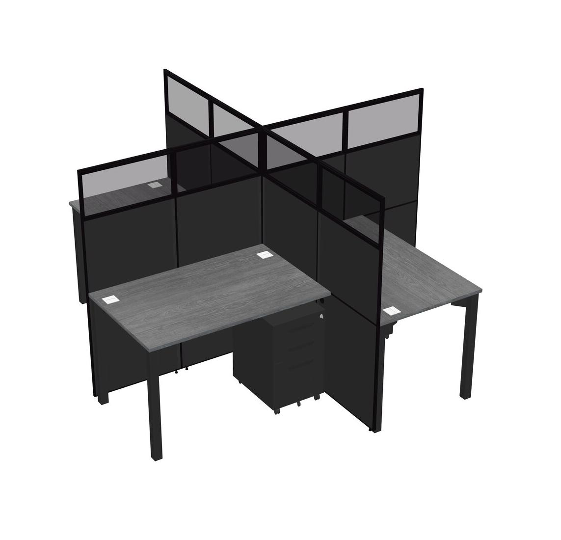 Postes De Travail Quadruples Gris Pour 4 Personnes + Tiroirs Mobiles En Métal Noir