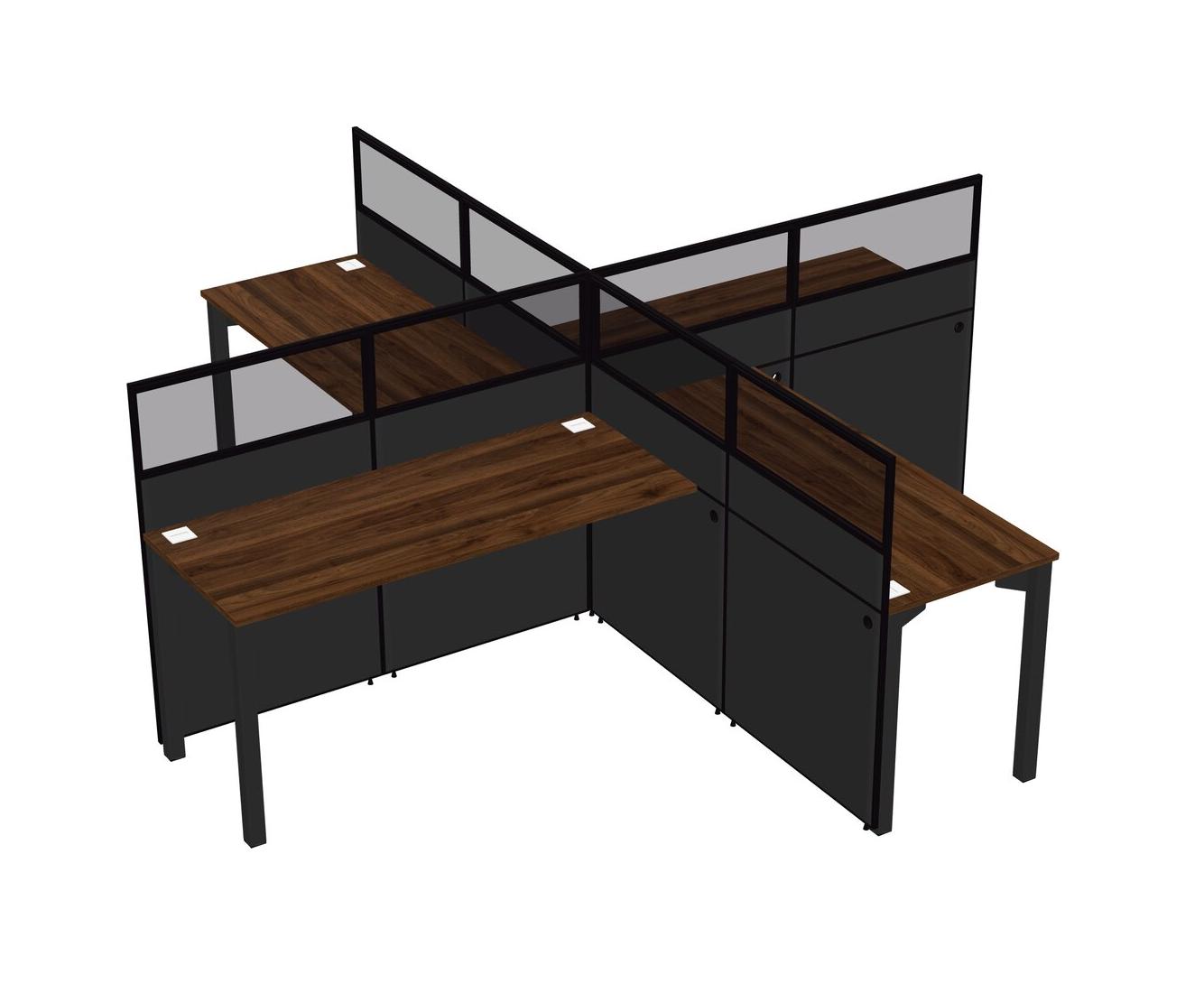 Postes De Travail Quadruples En Noyer Columbia Pour 4 Personnes