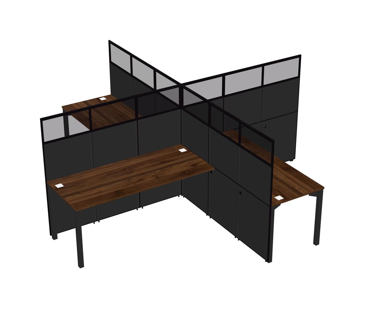 Postes De Travail Quadruples En Noyer Columbia Pour 4 Personnes