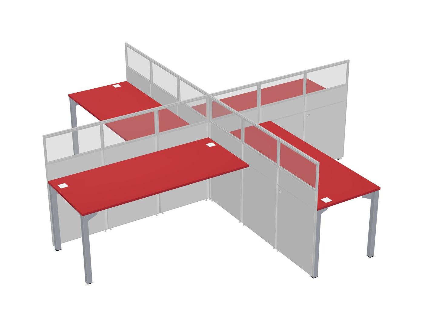 Postes De Travail Quadruples Prism Red Pour 4 Personnes