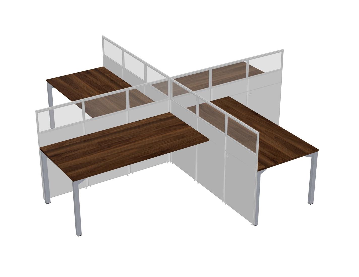 Postes De Travail Quadruples En Noyer Columbia Pour 4 Personnes