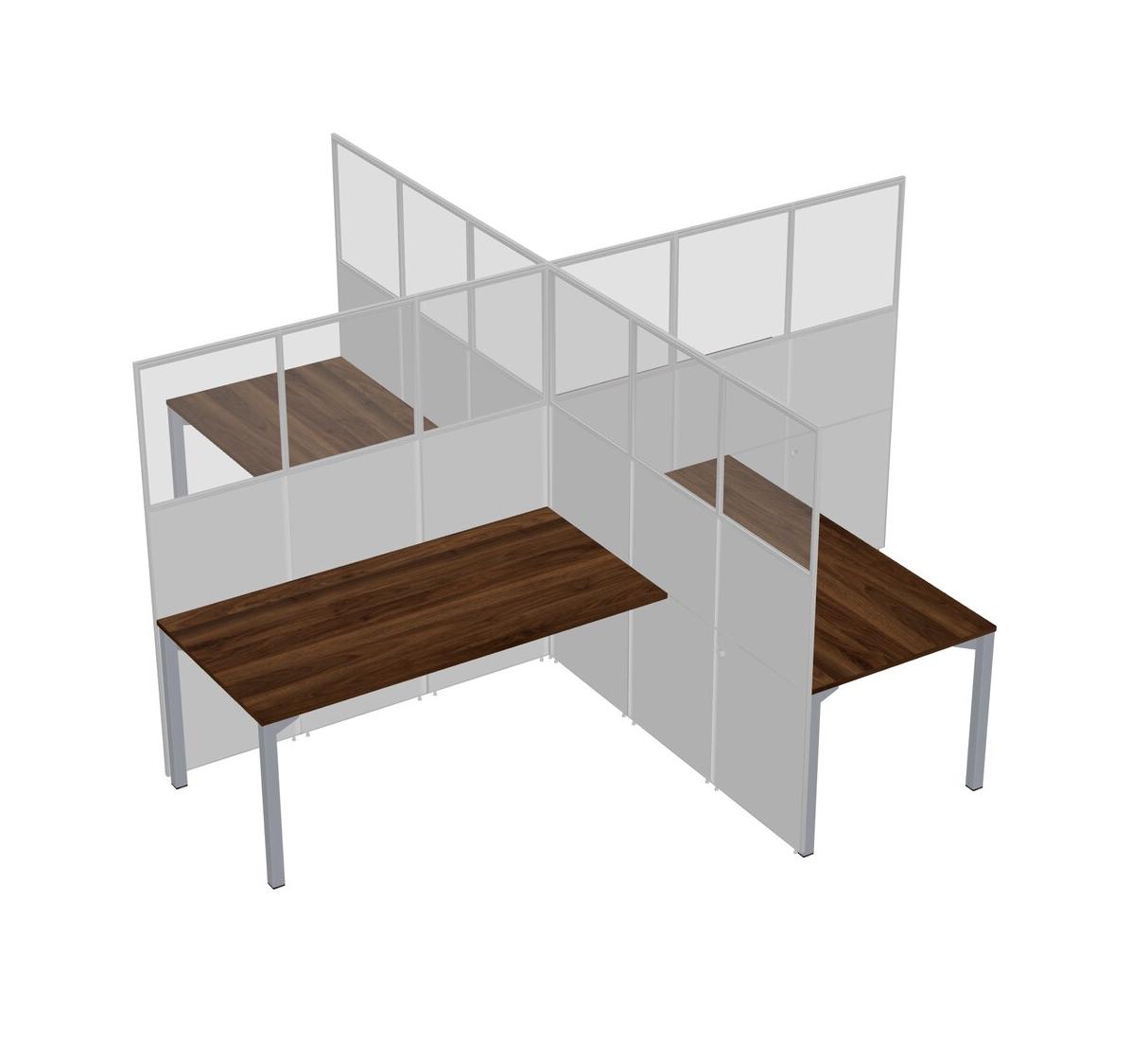 Postes De Travail Quadruples En Noyer Columbia Pour 4 Personnes