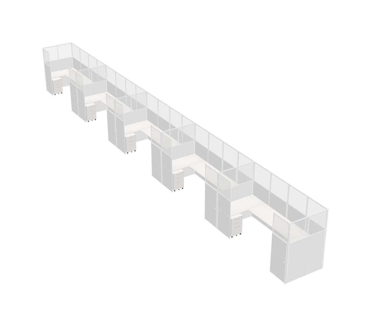White U-shaped Panel System For 5 Person + Metal Mobile Drawers For 5 User(s)