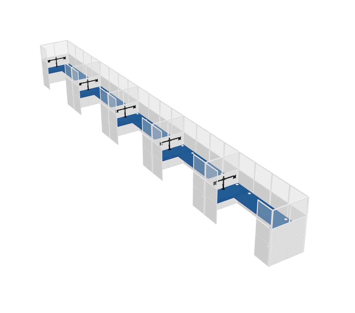 Prism Blue U-shaped Panel System For 5 Person + Monitor Arm (double Arms) For 5 User(s)