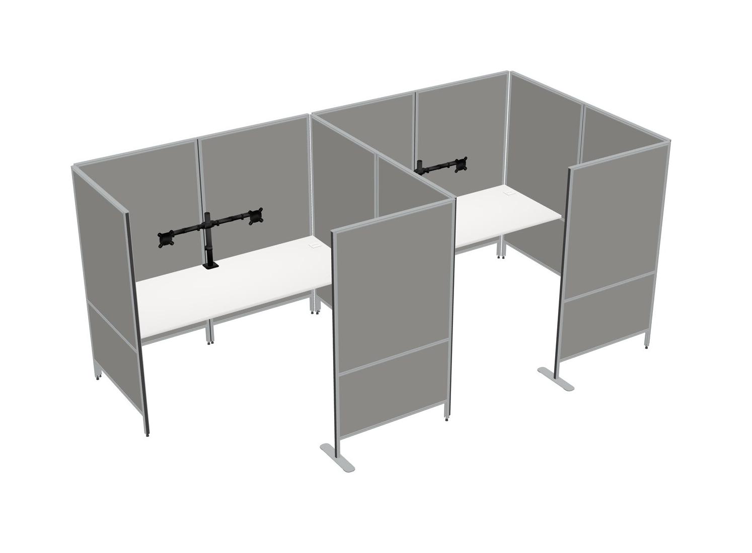 White Flexible Panel System With Privacy For 2 + Monitor Arm (double Arms)
