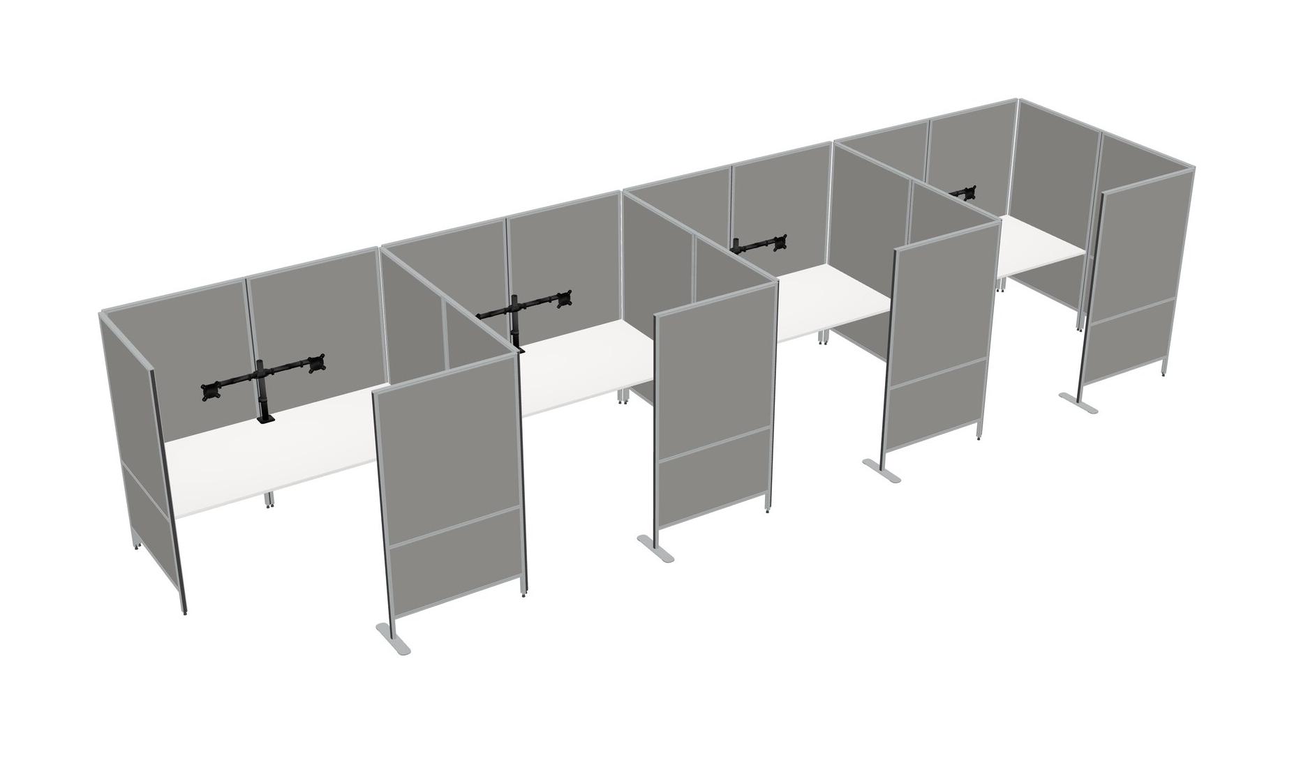 White Flexible Panel System With Privacy For 4 + Monitor Arm (double Arms)