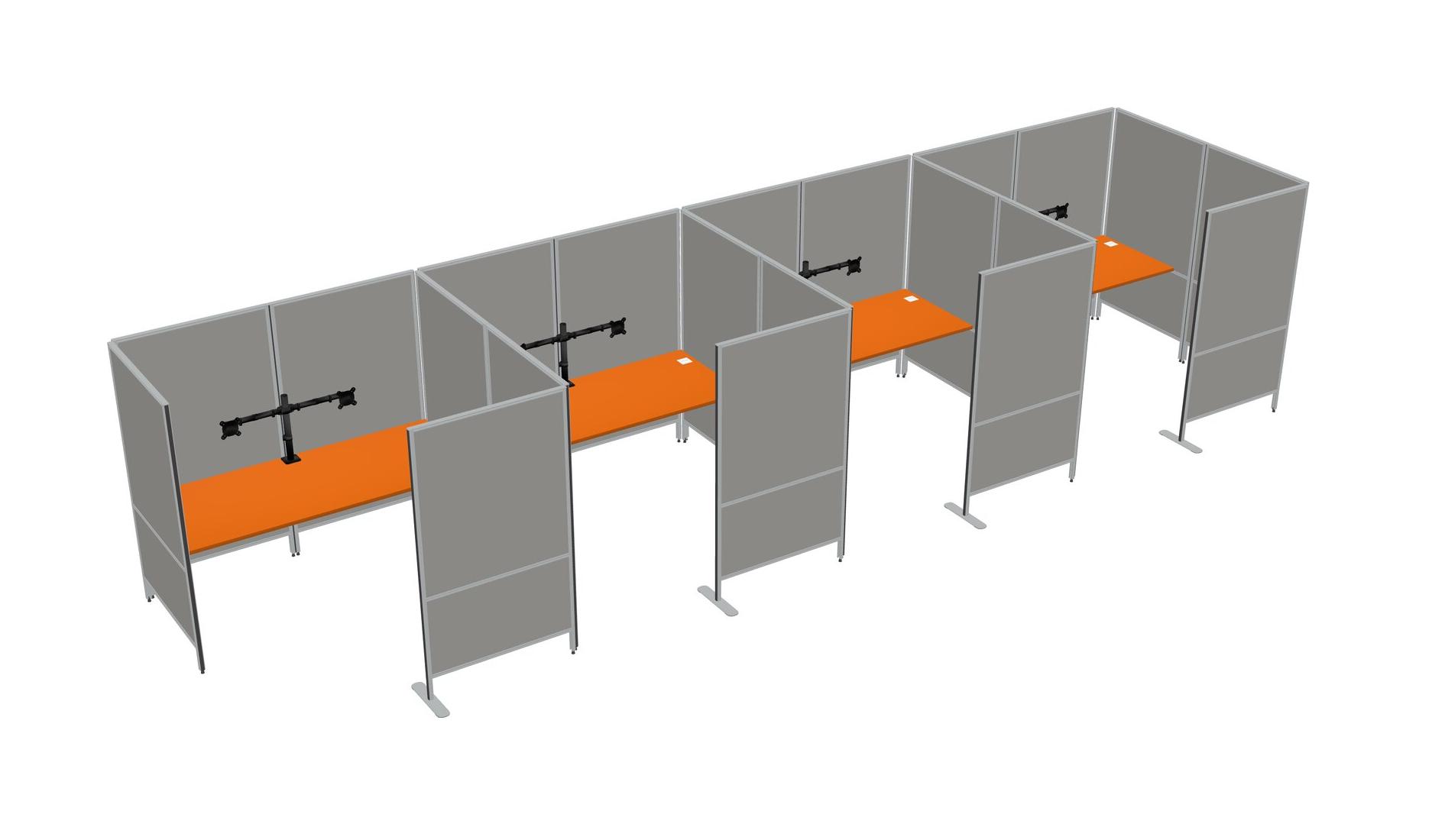 Orange Flexible Panel System With Privacy For 4 + Monitor Arm (double Arms)
