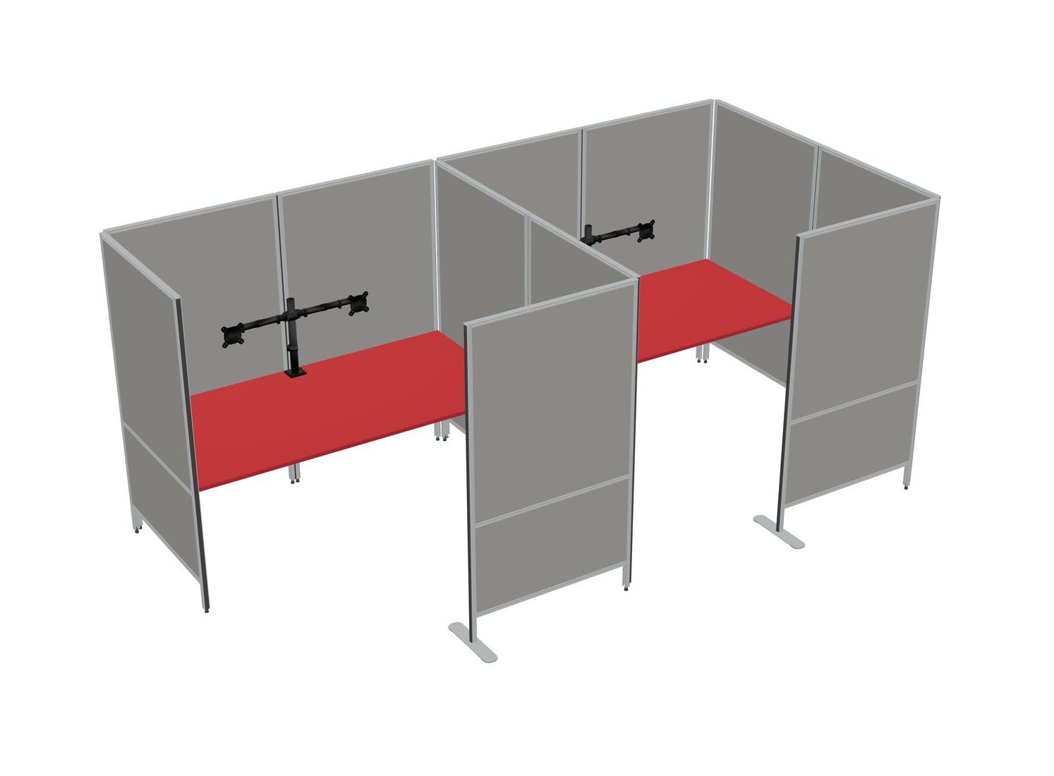 Prism Red Flexible Panel System With Privacy For 2 + Monitor Arm (double Arms)