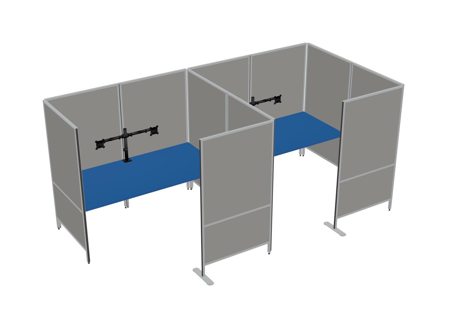 Prism Blue Flexible Panel System With Privacy For 2 + Monitor Arm (double Arms)