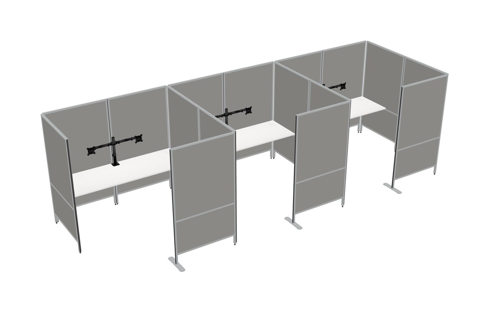 White Flexible Panel System With Privacy For 3 + Monitor Arm (double Arms)