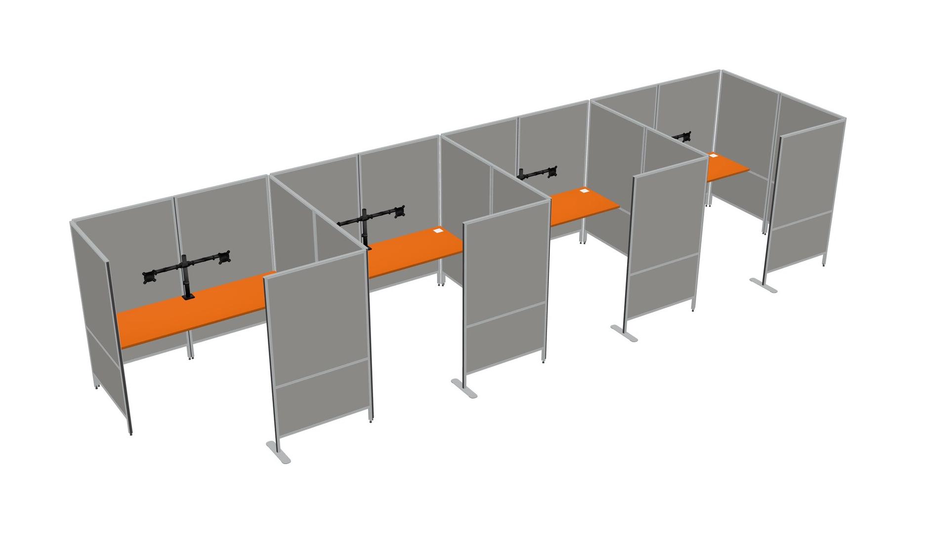 Orange Flexible Panel System With Privacy For 4 + Monitor Arm (double Arms)