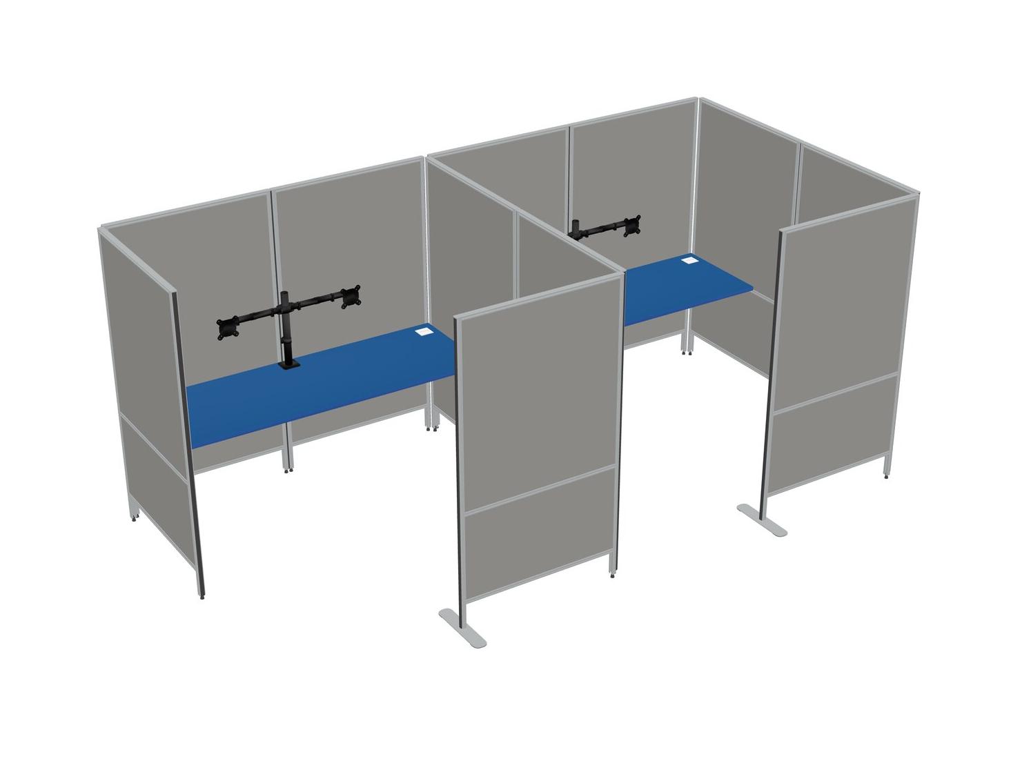 Prism Blue Flexible Panel System With Privacy For 2 + Monitor Arm (double Arms)