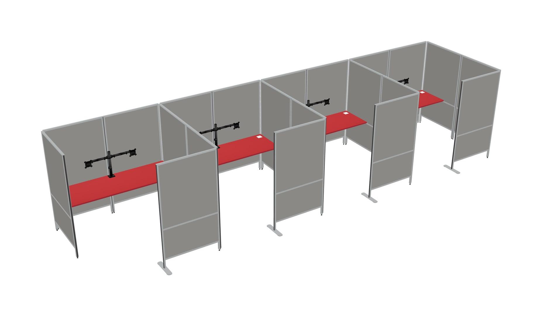 Prism Red Flexible Panel System With Privacy For 4 + Monitor Arm (double Arms)