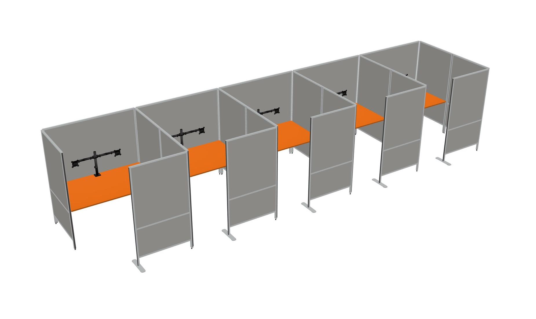 Orange Flexible Panel System With Privacy For 5 + Monitor Arm (double Arms)