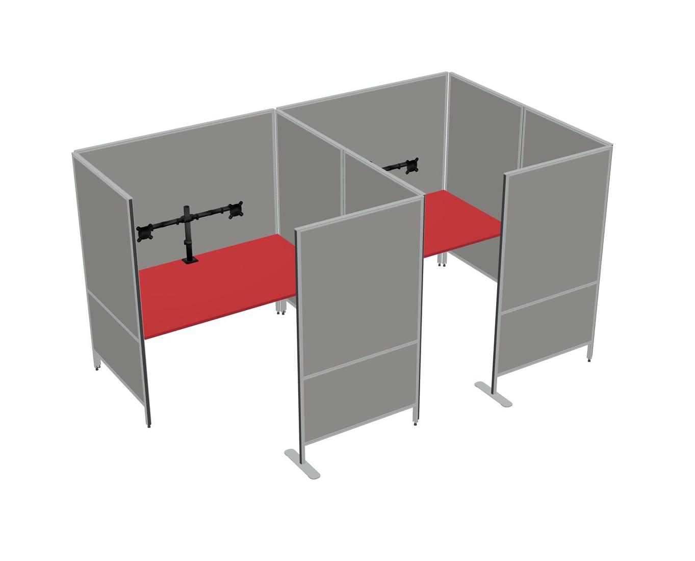 Prism Red Flexible Panel System With Privacy For 2 + Monitor Arm (double Arms)