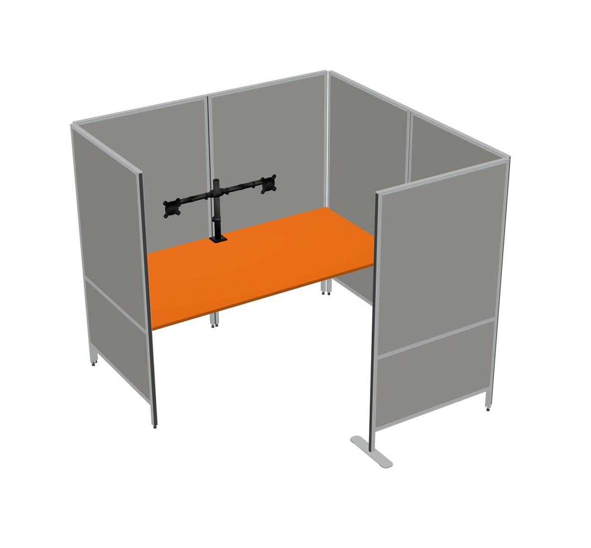Orange Flexible Panel System With Privacy For 1 + Monitor Arm (double Arms)