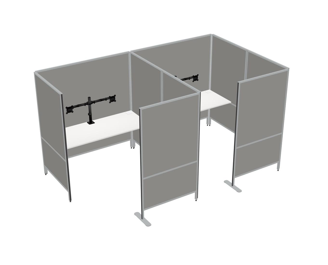 White Flexible Panel System With Privacy For 2 + Monitor Arm (double Arms)