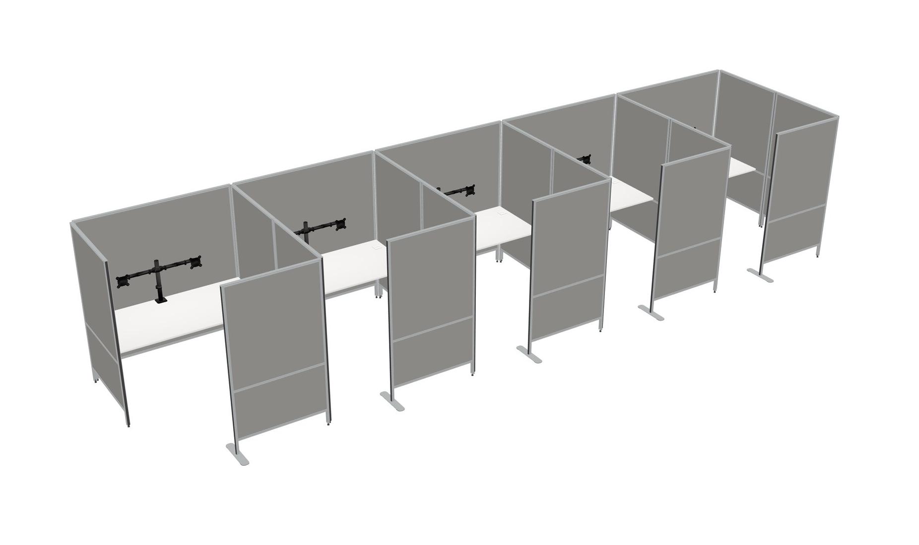 White Flexible Panel System With Privacy For 5 + Monitor Arm (double Arms)